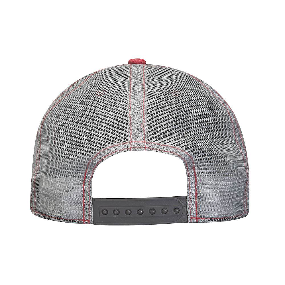 • charcoal gray front panel with light gray nylon mesh back panels and contrast color visor