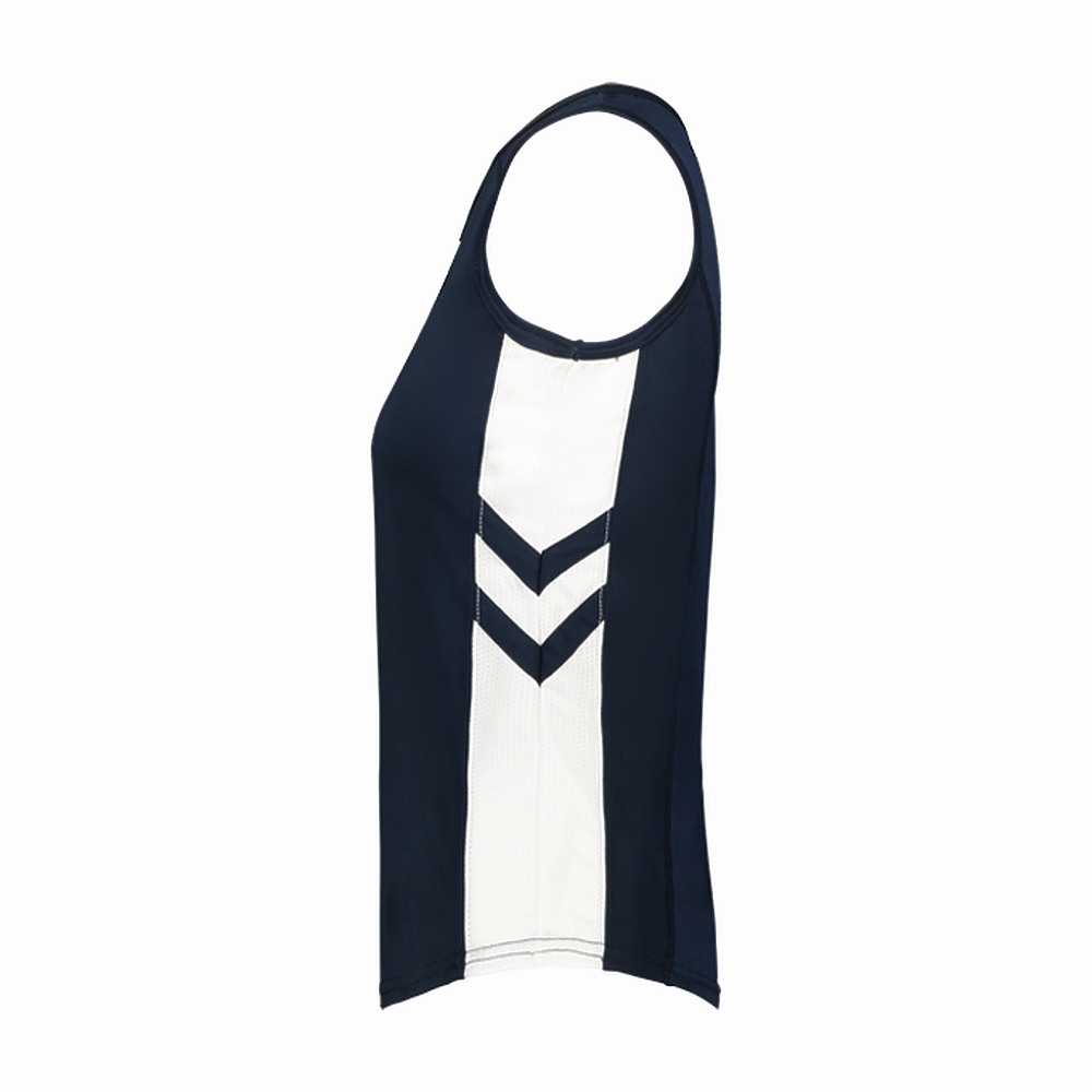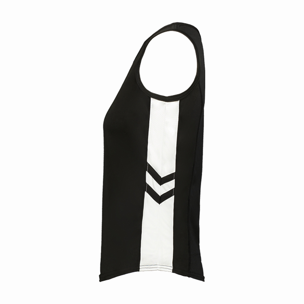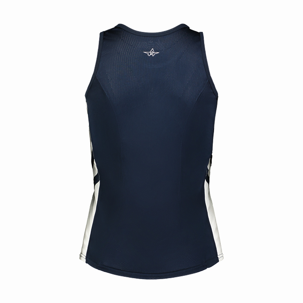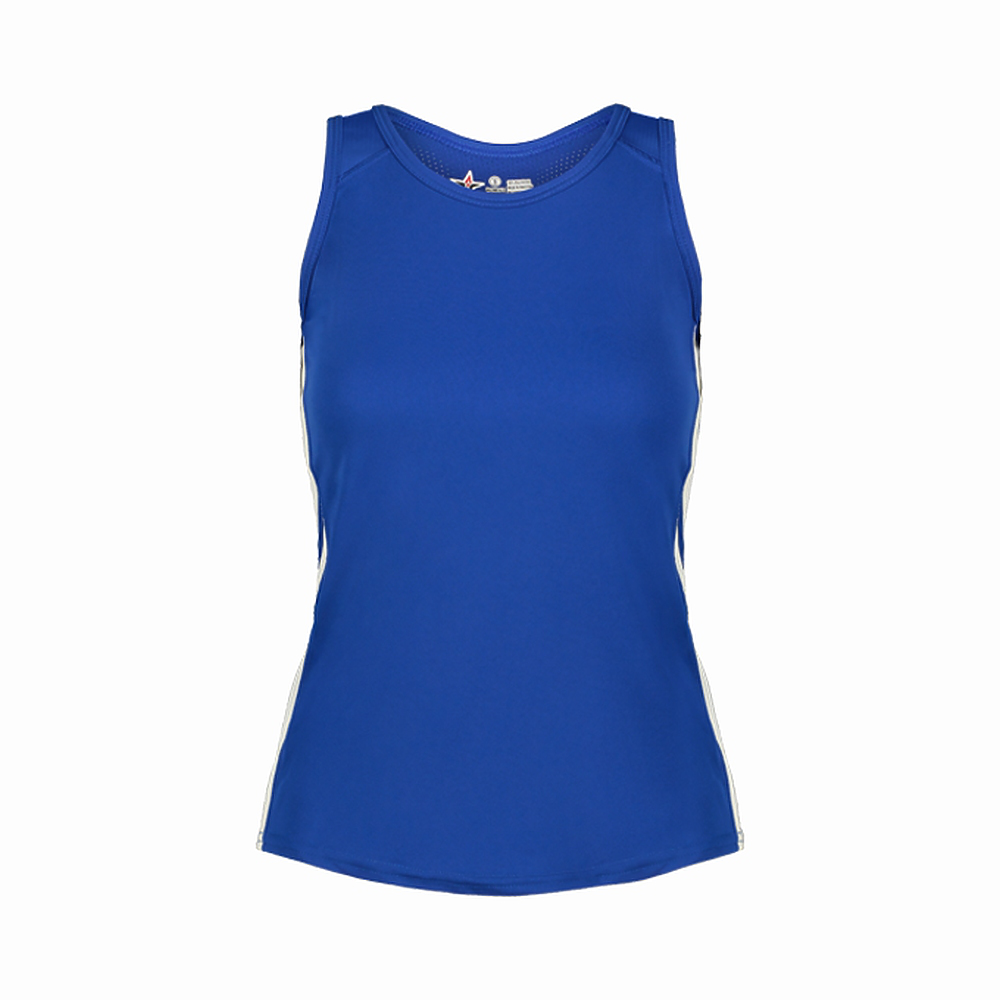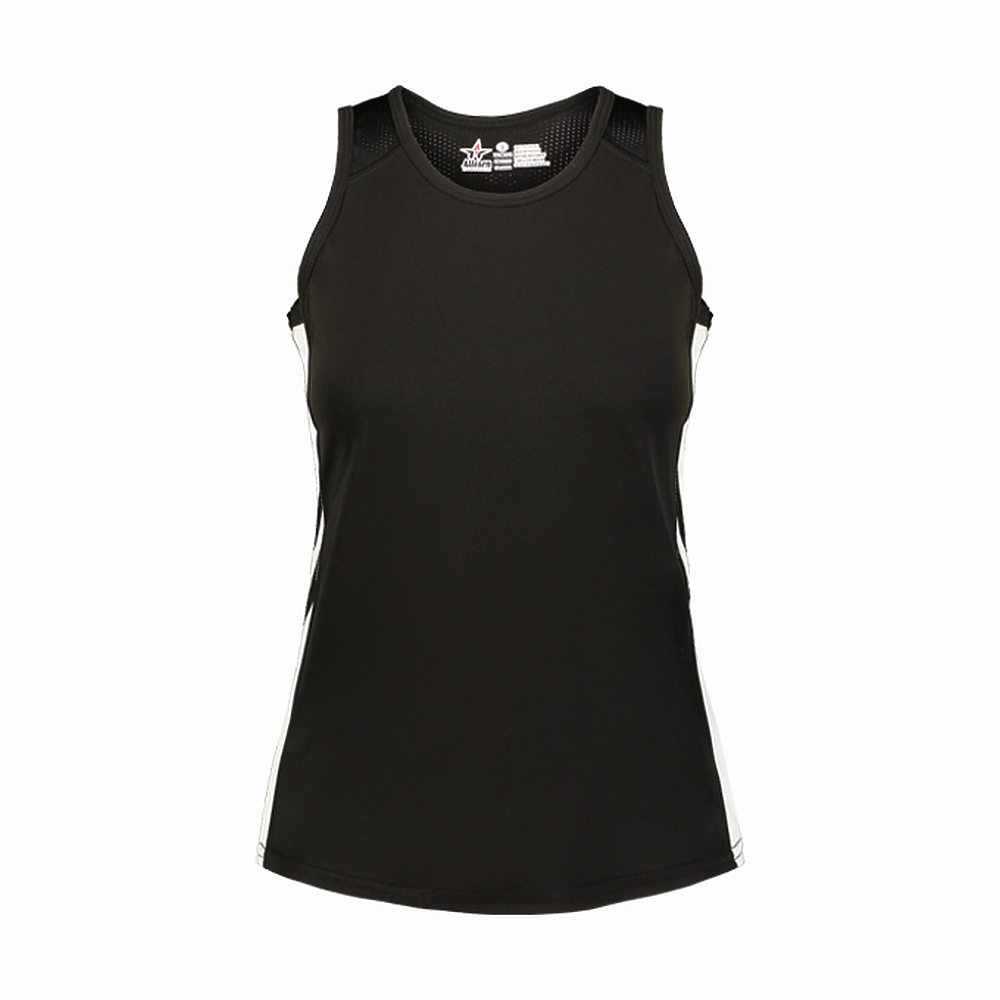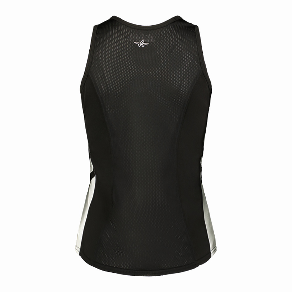 • Sleeveless single ply tank construction with mesh back panel and contrast side inserts for breathability and mobility